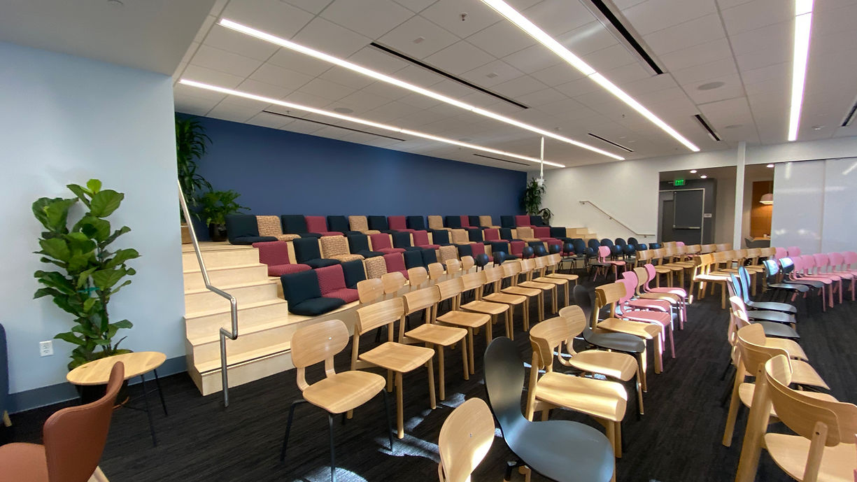 The project included the design and implementation of new workspaces, conference rooms, auditorium-style assembly areas, upgraded infrastructure, and enhanced interior finishes throughout the renovated area.